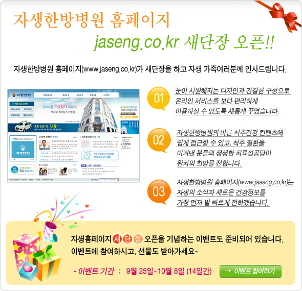 자생 홈페이지가 새얼굴로 인사드립니다